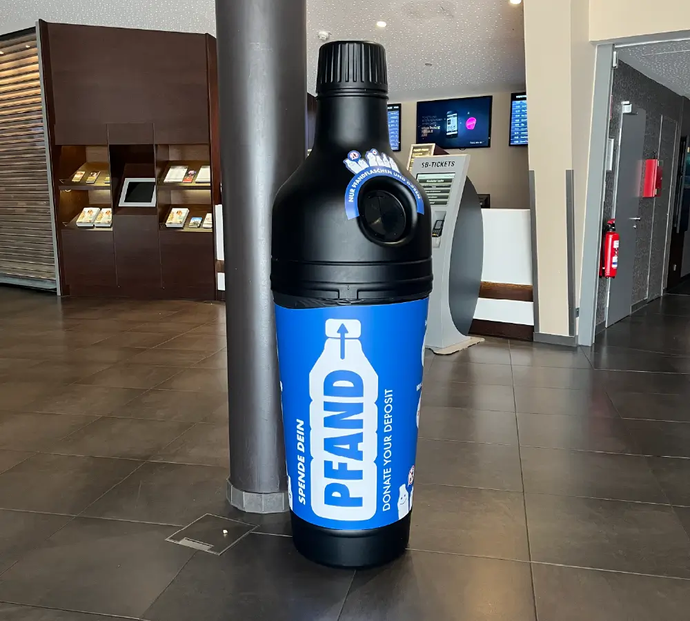Trotz der immer häufigeren Verwendung von z.B. wiederverwendbaren Edelstahl-Trinkflaschen sind die Einweg- und Mehrwegflaschen aktuell noch nicht wegzudenken. Durch deutsche Pfandsysteme ist die Zurückführung von verschiedenen Flaschen (z.B. aus dem eigenen Haushalt) zum Recyclingkreislauf durch Supermärkte und Getränkemärkte gewährleistet. Doch was passiert mit den einzelnen ToGo-Flaschen, die mal eben am Imbiss oder einem Getränkeautomaten gekauft werden? Diese Pfandflaschen werden oft nicht bei einer Pfand-Annahestelle abgegeben, sondern weggeschmissen.